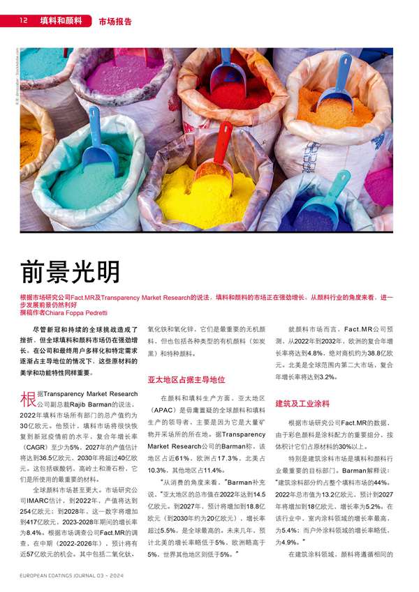 根據(jù)市場研究公司Fact.MR及Transparency Market Research的說法,填料和顏料的市場正在強勁增長。從顏料行 業(yè)的角度來看,進一步發(fā)展前景仍然利好