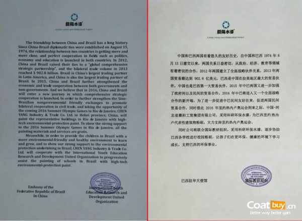 據(jù)悉,晨陽水漆還將聯(lián)合國際教研組織,采用環(huán)保水漆對(duì)巴西各學(xué)校進(jìn)行粉刷,讓孩子們?cè)诟h(huán)保、健康的環(huán)境下學(xué)習(xí)成長,支持巴西的環(huán)保事業(yè)。