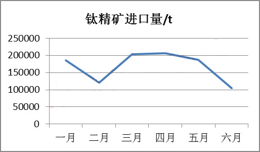 2014上半年累計進口鈦精礦1006694t,同比減少218103t,減幅為17.8%。