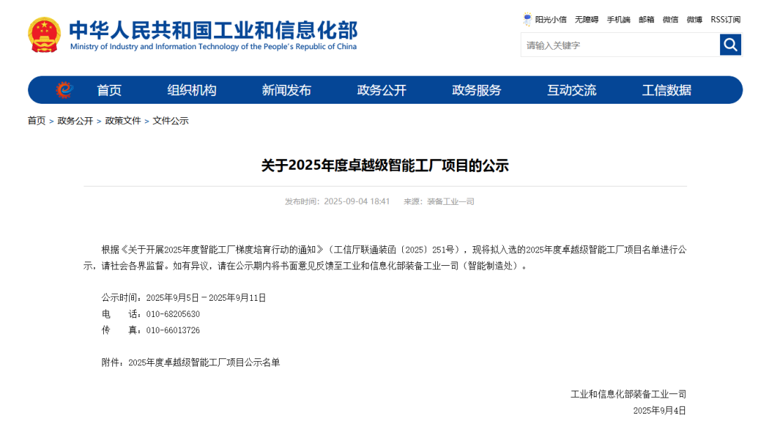 關于2025年度卓越級智能工廠項目名單
