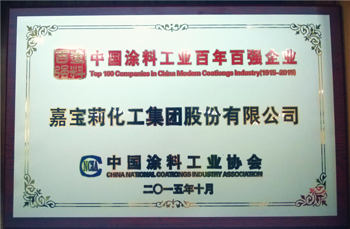 2015年10月20日,中國涂料工業協會為慶賀中國涂料工業迎來了百年華誕,暨協會成立30周年之際,在京隆重舉行了中國涂料工業百年頒獎晚會,嘉寶莉受邀出席并被授予四項殊榮。