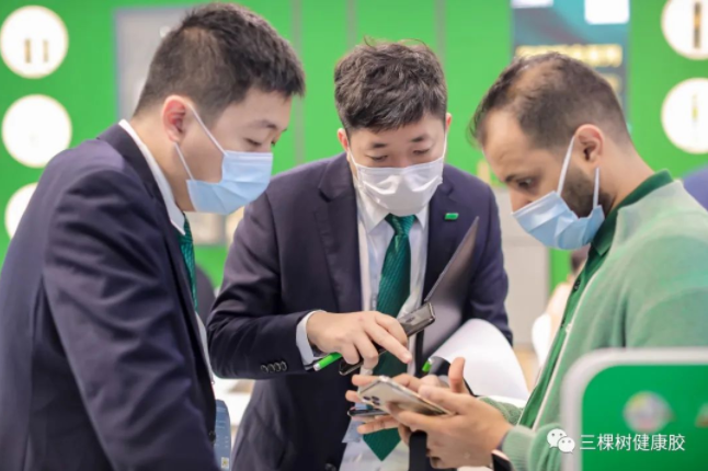 三棵樹健康膠本次參展旨在展示三棵樹的品牌力,擴大行業(yè)影響力,同時吸引更多優(yōu)秀的合作伙伴同頻共振,投入到三棵樹的偉大事業(yè)中。經(jīng)過緊鑼密鼓的籌備,三棵樹健康膠以其高端的品牌形象與高品質(zhì)的產(chǎn)品亮相展會,現(xiàn)場進(jìn)入展館的觀眾絡(luò)繹不絕,三棵樹憑借其高標(biāo)準(zhǔn)的接待和服務(wù)給來訪觀眾留下了深刻的印象,交流熱情高漲。