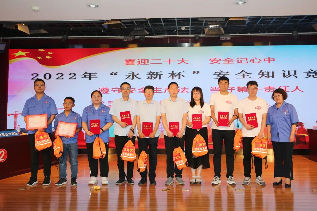 2022年6月22日,由公司安委會舉辦的“喜迎二十大,安全記心中”“永新杯”安全知識競賽在九樓多功能廳舉行。來自公司機(jī)關(guān)、永新涂料、永新大貿(mào)、永新置業(yè)、永新管業(yè)共6支參賽隊(duì)參賽。舉辦此次活動旨在強(qiáng)化全員安全紅線意識,普及安全知識,提高安全素養(yǎng),推動公司安全文化建設(shè),提高落實(shí)主體責(zé)任的能力。