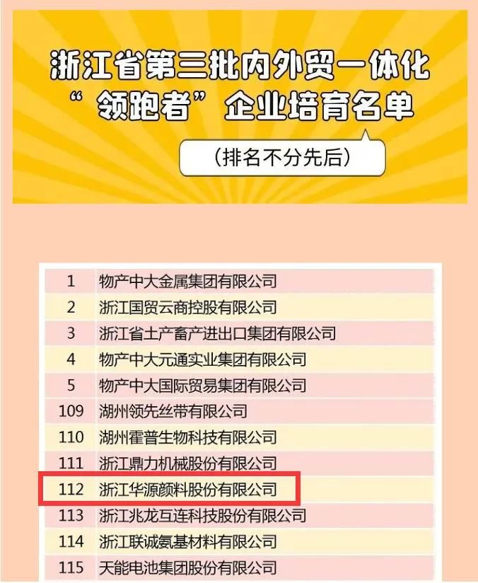 近日,浙江省商務廳公布了浙江省第三批內外貿一體化“領跑者”企業培育名單,華源顏料榮列其中。
