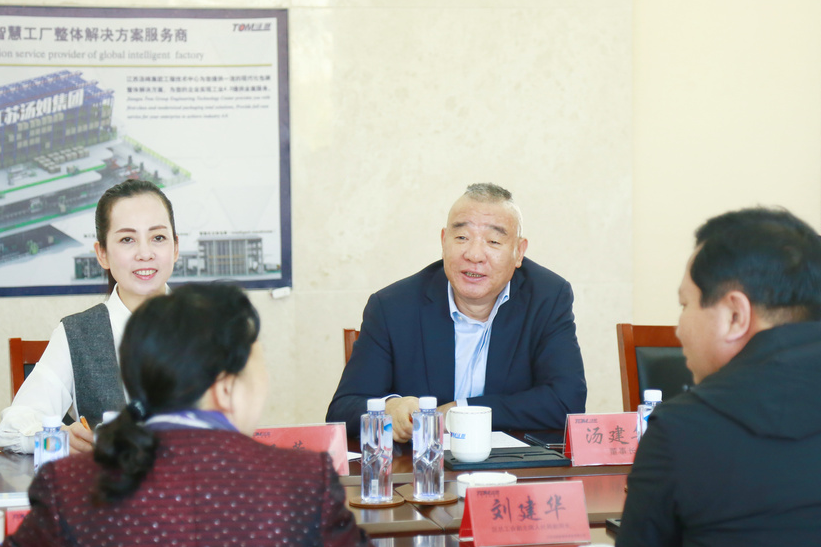 江蘇湯姆集團董事長湯建華、總經理王芳、財務總監兼工會主席吳芳、新產品研發總監兼湯姆教育培訓中心校長劉路熱情接待了各位領導并出席會議。