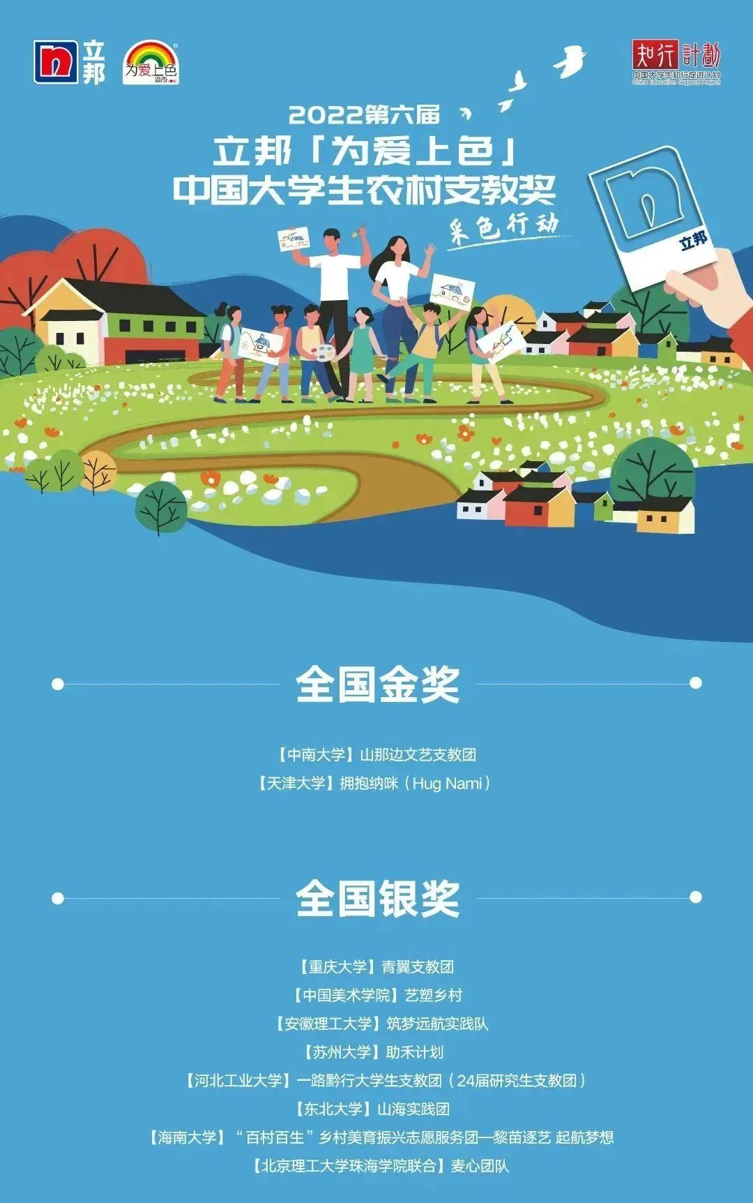2022年第六屆立邦「為愛上色」中國大學生農村支教獎獲獎名單