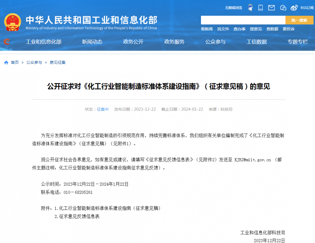 工信部對《化工行業智能制造標準體系建設指南》公開征求意見