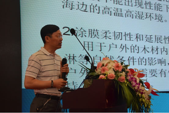 來自北京化工大學(xué)同時又是中國水性木器涂料產(chǎn)業(yè)聯(lián)盟專家委員會主任的何立凡教授帶來了《高性能戶外水性木器漆研制及應(yīng)用》的報告。戶外家具包括門窗、欄桿、桌椅、棧道等木結(jié)構(gòu)材料,范圍十分廣泛,因?yàn)樵谑彝?,故而對耐水性、耐候性有較高的要求。何教授認(rèn)為,選用耐候性優(yōu)異的樹脂體系、設(shè)計(jì)合理的粒子結(jié)構(gòu)、采用反應(yīng)適中的交聯(lián)單體、配合多效的助劑、建立完整的涂裝體系,就能夠得到優(yōu)異的水性木器涂料,成功應(yīng)用在戶外家具上。
