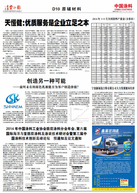 中國涂料報 2014年7月10日 星期四
