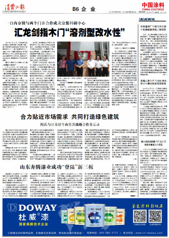 一日內(nèi)分別與兩個門企合作成立涂裝科研中心