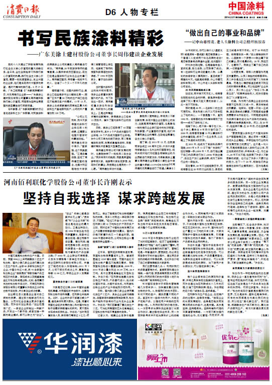 ——廣東美涂士建材股份公司董事長周偉建談企業(yè)發(fā)展