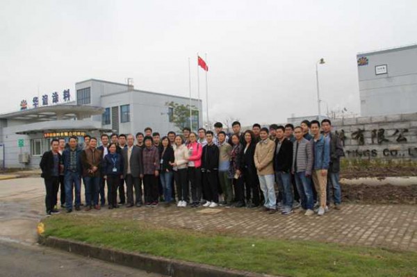 2016年11月21日,中國涂料工業(yè)大學(xué)首屆涂料專業(yè)技術(shù)培訓(xùn)班赴上海市華誼涂料公司參觀和進(jìn)行現(xiàn)場教學(xué)活動(dòng)。與全體培訓(xùn)班學(xué)員同行的有培訓(xùn)班教師、中國涂料工業(yè)協(xié)會(huì)顧問、涂料大學(xué)名譽(yù)副校長劉國杰教授級高工,培訓(xùn)班教師、上海工程技術(shù)大學(xué)(簡稱”工程大”)涂料工程學(xué)院副院長王景成教授和甘文君教授,培訓(xùn)班班主任巫德寬老師。受到華誼涂料公司黨總支童嘉瑛書記、華誼涂料公司戚平常務(wù)副總經(jīng)理等熱情接待,并對公司建設(shè)和發(fā)展情況作了簡介。全體師生到樹脂合成車間和制漆車間現(xiàn)場參觀,車間主任和技術(shù)人員認(rèn)真講解,參觀者積極提問,講解者耐心解答,互動(dòng)活躍,收到很好效果。